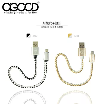 【A-GOOD】Micro USB皮革編織鋁合金快充傳輸充電線-30公分(金白-黑白)黑白 現金回饋