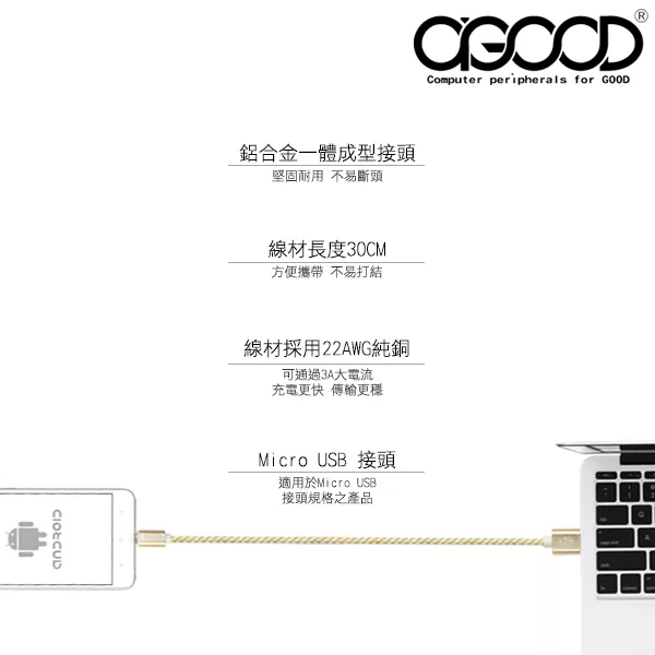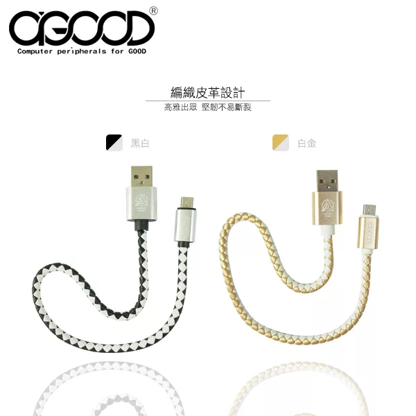 【A-GOOD】Micro USB皮革編織鋁合金快充傳輸充電線-30公分(金白-黑白)黑白 評價