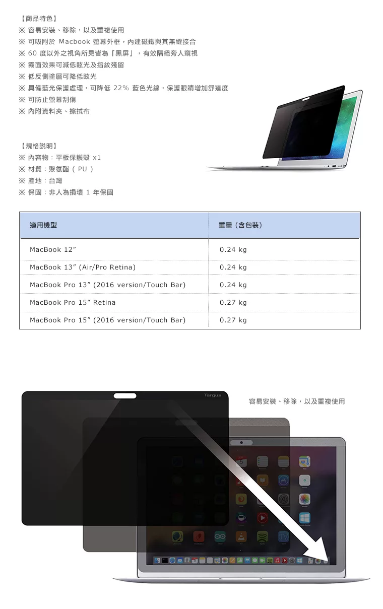 Targus MacBook 13”(Air-Pro Retina) 雙面磁性防窺護目鏡 評價